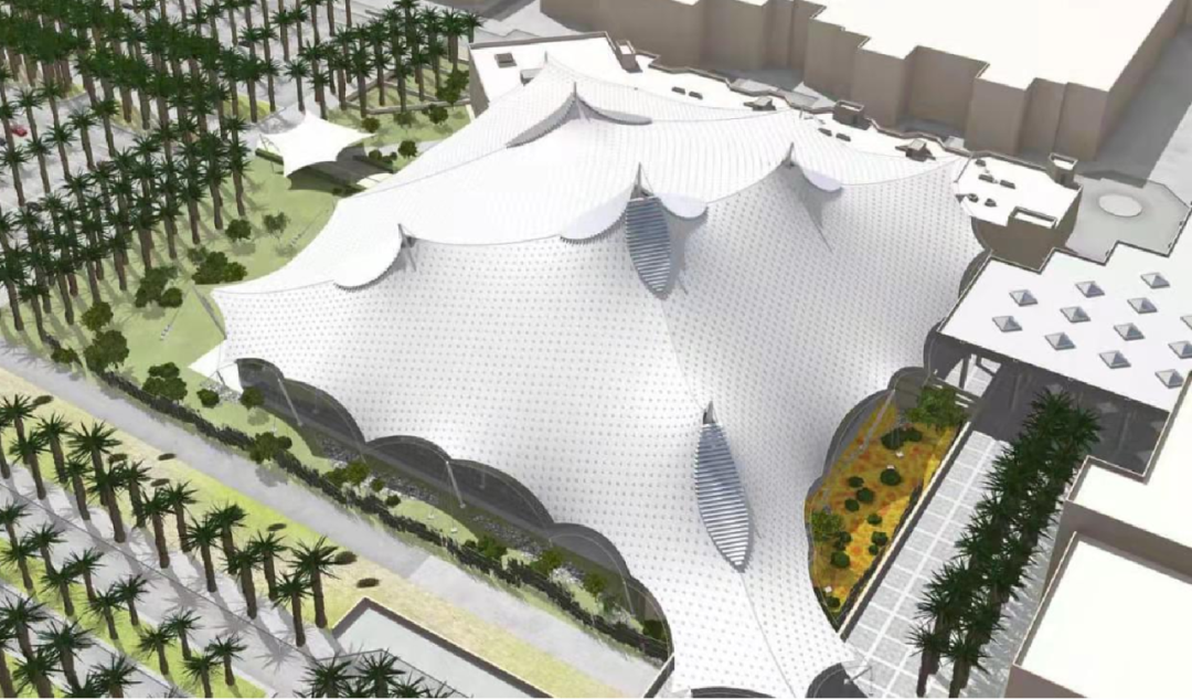 Roof span of 323m×296m